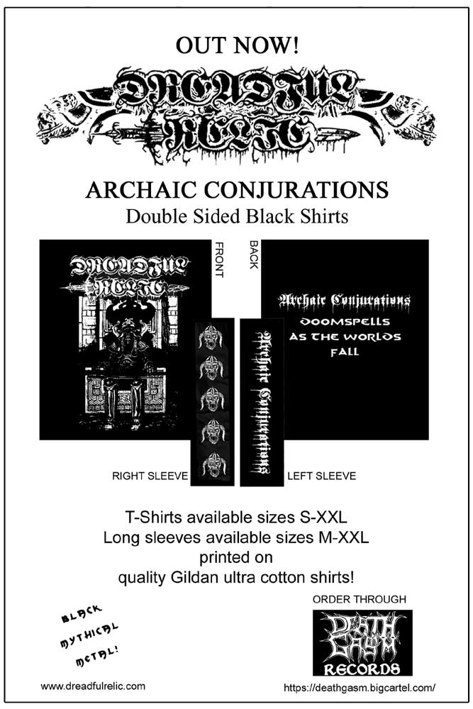 Official DREADFUL RELIC "Archaic Conjurations" T-SHIRT & LONGSLEEVES available now from DEATHGASM RECORDS